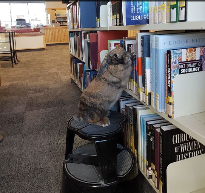 Aber auch in der seltensten Fall, wenn Sie ein Hasen finden würden, würde er durch die ganze Bibliothek herumlaufen und herumlaufen. Aber nicht dieser entzückende kleine Pelzkugel. Dieser Kerl hat andere Interessen wie Soziologie und ist daran interessant, ein angemessenes Buch zu finden, um auf demselben Thema zu lesen.