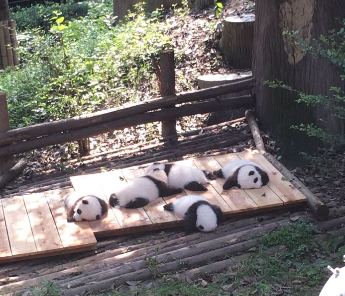 Pandas haben etwas sehr attraktiv über sie, nur rollen hier und da herum. Sie können einfach nicht helfen, aber verlieben mit diesem entzückenden, faul, Fuzzy-Schwarz-Weiß-Ball des Pelzes. Dieser kleine faule Panda-Bär aussieht völlig müde und es scheint, als wären sie einschlief, wo sie waren.