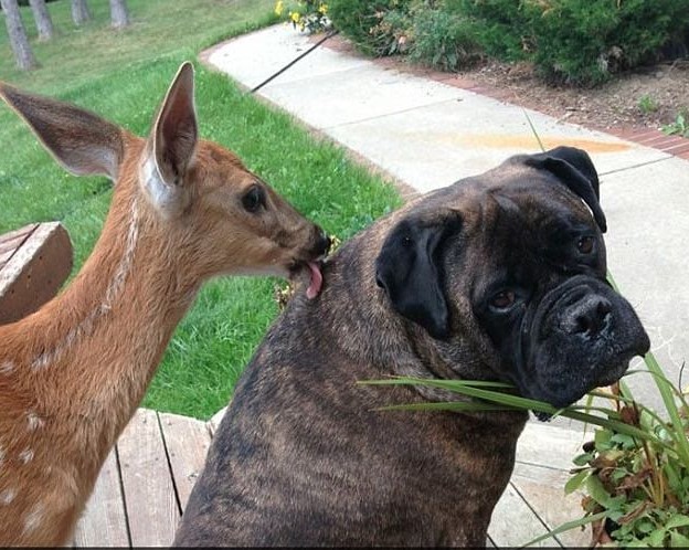 Es ist in der Regel die Hunde, die auf dem Geben Ende dieser lecken Behandlung sind, während ihre Liebe zeigen. Aber dieser Hund sieht nicht gut gelaunt, als er auf der Empfängerseite der lecken Behandlung endet. Dieser Hund trotz nicht in einer guten Stimmung suchen läßt das Rehkitz ihm lecken aufgrund der Tatsache, dass Hirsch ihn gerne zu lecken.