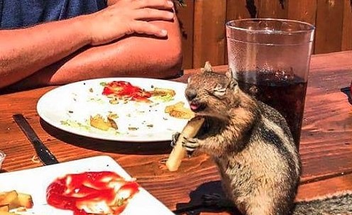 Eichhörnchen sind eine der süßesten Nagetieren und sind bekannt für ihre Geschwindigkeit immer bekannt, während sie nach sich ziehen ihre Nahrung ablaufen. Aber diese kleinen, hier will eine Ausnahme machen. Dieser klein man kommt und nimmt ein braten von einer Platte und hält dann an und lächelt und posiert für ein Foto.