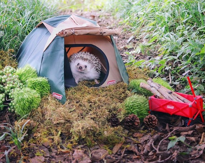 Jeder sollte völlig vorbereitet sein, wenn Sie auf eine Campingreise gehen und genau das ist, was dieser Igel tat. Dieser kleine stachelige Critter braucht kein Zelt oder sonst noch etwas, um in der Wildnis zu überleben, aber wer würde keinen angenehmen Ort zum Entspannen mögen. Es ist sehr ungewöhnlich, einen Igel zu sehen, wie dies und das auch so breit lächelt.