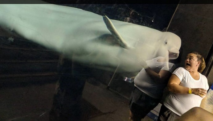 Manchmal scheint es, als ob die Tiere einen besseren Humor haben als die meisten Menschen. Und dies ist eines der klassischen Beispiele derselben. Als diese Dame das mystische Aquarium besuchte und Spaß hatte, kam dieser Beluga-Wal auf und schlug auf sie auf, um die Hölle aus ihr zu schrecken, und die Reaktionen von Belugas sagen, wie glücklich sie dabei ist.