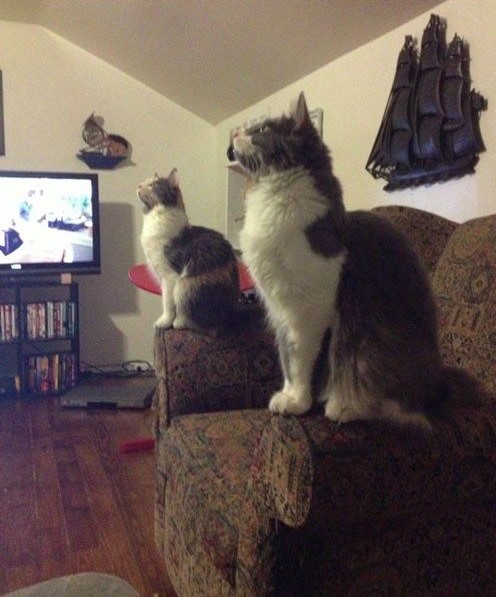 Aber Tiere können die Sprache des Menschen nicht verstehen und somit haben sie ihre separate Quelle der Unterhaltung. Wie diese beiden Katzen, die gerne Vögel sehen, und auch das in der Firma einander. Wer braucht andere paar Tore, wenn Sie diese beiden entzückenden Liebeskatzen haben?