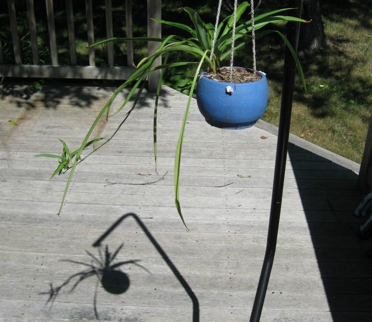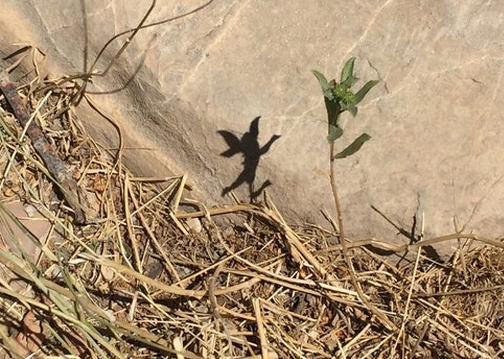 Dieser Kerl hatte einen Spaziergang in diesem Garten, als er auf den Schatten seiner Pflanze kam, als wäre er ein großer Spinne und wir können wetten, dass er wie ein kleines Baby geschrien hätte.