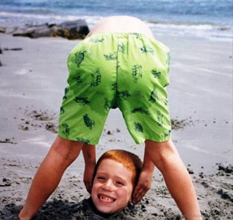 Der Körper ist über dem Boden und der Kopf in der Erde vergraben und dieser Satz ist genug, um Ursache Ekel jemand allein das Bild lassen. Diese Kinder haben einen großen Sinn für Humor, aber eine Menge Kredit ist aufgrund des Fotografen, der sein Bild aussehen wie ein authentischen gemacht.