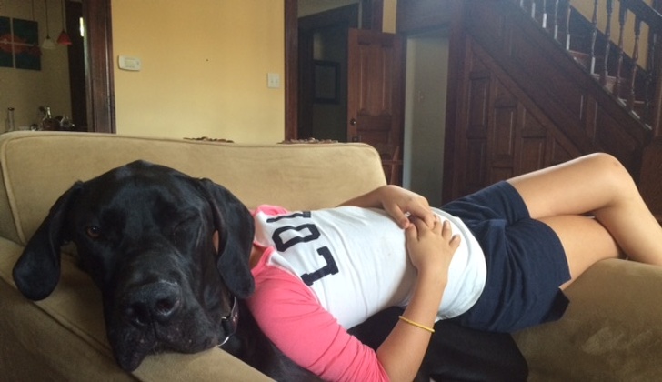 Die Art und Weise, wie dieser Hund denjenigen ansieht, den er streichelt, wäre nur so entzückend gewesen, dass der Hintergrund ein bisschen weniger gefährlich gewesen wäre. Das von den Stühle gebildete Bild erscheint wie ein gefährlicher Zähne, und dieser Hund scheint in der Stimmung zu sein, diesen Kerl zu essen.