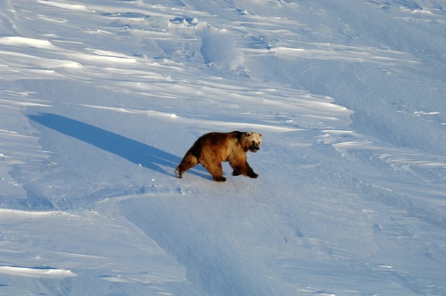 Meistens sind es die männlichen Grizzlies, die sich in die Territorien von Eisbären bewegen. Sie bewegen sich soweit er könnten, um Territorien zu etablieren, aber die Weibchen bleiben meistens in einem Gebiet. Heute überlappen sich die beiden völlig unterschiedlichen Arten in der kanadischen Arktis und in Sibirien. Was bedeutet das also für die Zukunft der Bären?