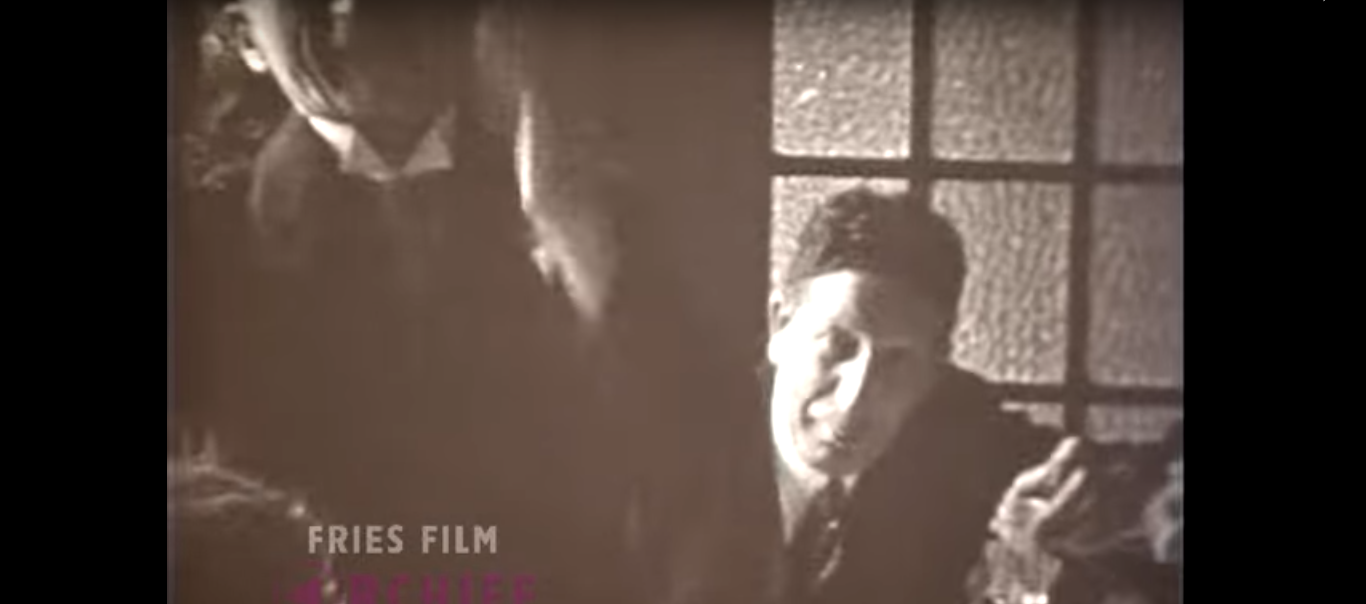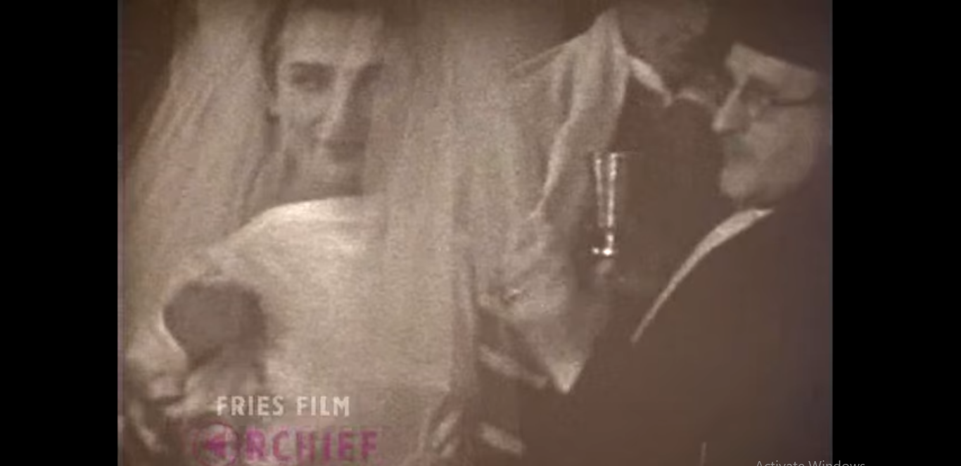 Dann ist der Empfang, in dem das Paar alle entspannt erscheint. Die Rezeption fand im Deutschen Adler, dem örtlichen jüdischen Kosher-Hotel, statt. Die Kamera pfannen über Gäste, die beim Trinken chitchachenadvocaat. - Niederländisch Eggnog und Chuckles, wenn Sie die Kamera sehen. Und schließlich ist der Bräutigam gesehen, der seine Braut an der Stirn küsst.