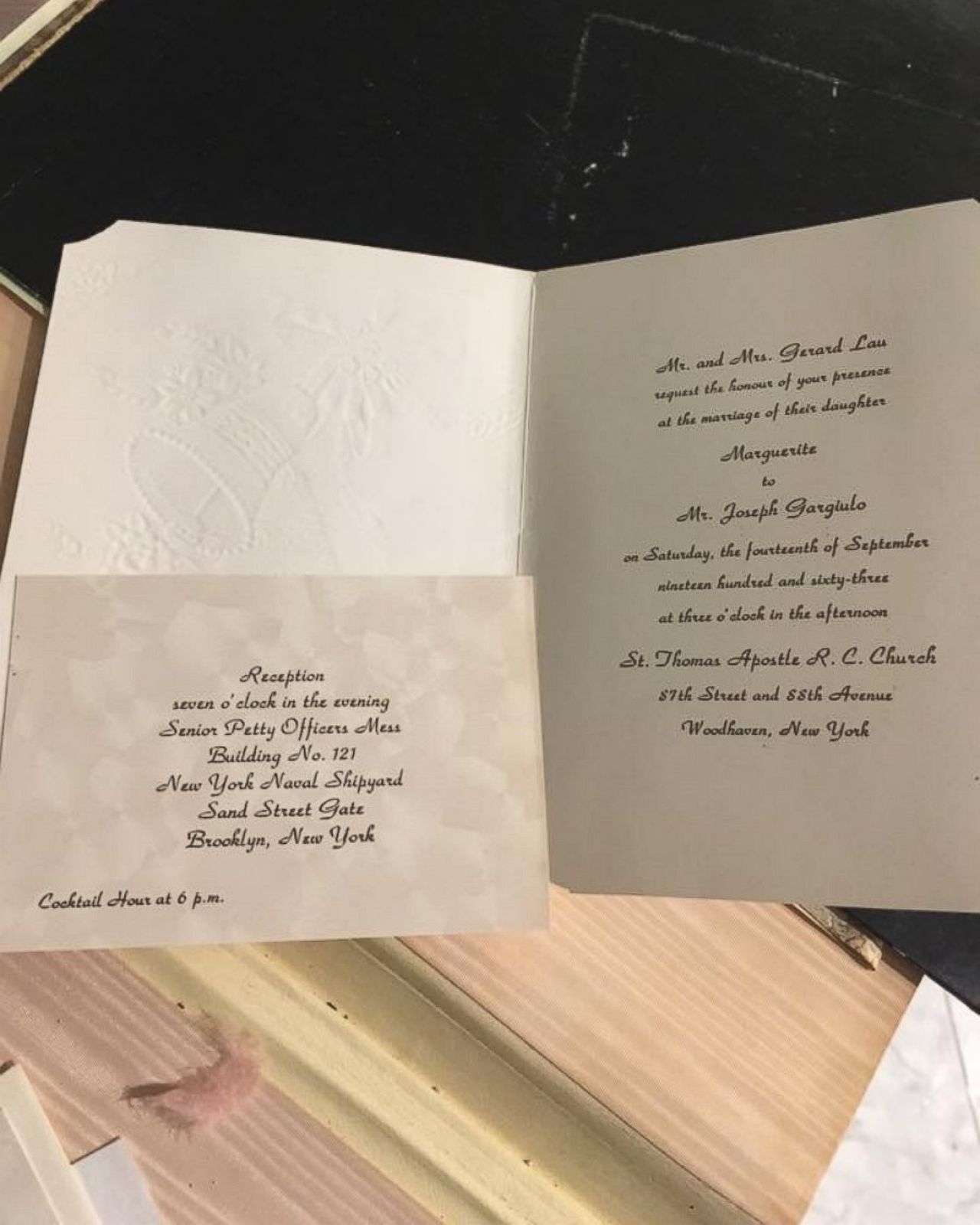 Bobby und Megan, während er durch das Fotoalbum simst, fand ein innen steckendes Stück Papier. Es war eine Kopie einer Hochzeitseinladung. Die Einladung enthüllte sehr viel zu den Brautpaaren. Sie waren Joseph Garguilo und Marguerite. Das Datum ist auf der Einladung geschrieben, war der 14. September. Was haben sie mehr gefunden?
