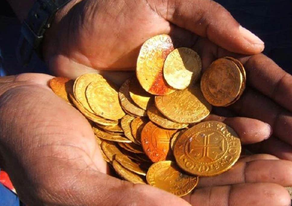 Der alte Ursprung, der auf der Entdeckung angegeben ist, "das Gold befand sich in Form von Münzen, in der Form von Münzen, mehr als 2.000 insgesamt, hauptsächlich spanische Excelentien, die die Ähnlichkeiten der Monarchen Ferdinand und Isabella, aber auch einige ventane, maurische, französische und andere Münze."
