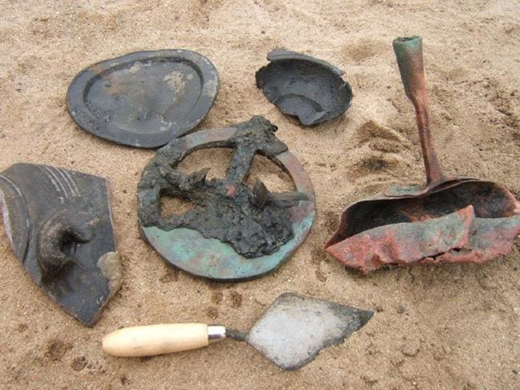 Der Geologe sagte ihm von all dem seltsamen Sachen, das sie auf der Strandoberfläche fanden. Sie hatten Wald, Kupfer-Halbkugel, Metallstücke und vielleicht ein Kupfer- oder Bronzelpfosten entdeckt. Sie schickten ihm auch eine E-Mail mit dem Bild von einem dieser "Rohre". Glücklicherweise fand Noli heraus, dass es ein Stück der Artillerie aus dem 16. Jahrhundert gehörte.