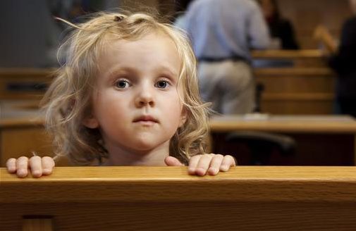 Die Wartezeit war vorbei. Mit einer alten Frau kam ein kleines Mädchen von sieben Jahren oder so. Sie war derjenige, der im Gerichtssaal bezeugen musste. Mit zitternden Beinen trat sie auf den Stuhl, der speziell für sie aufgestellt worden war.