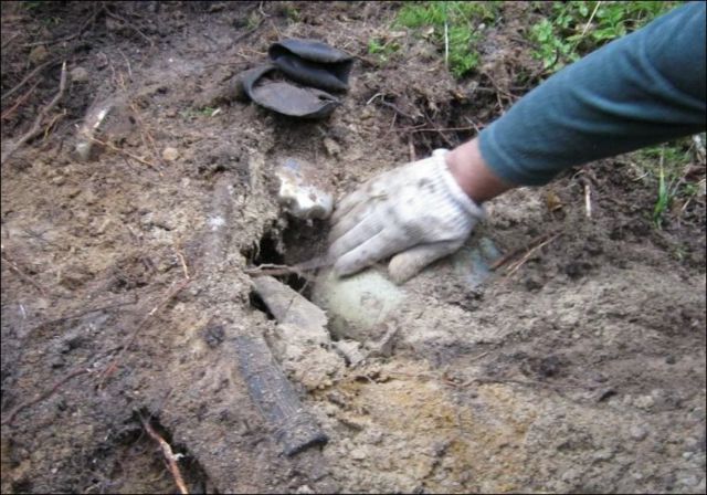 Der Mensch entdeckt den Schatz von der WWII mitten in einem russischen Wald