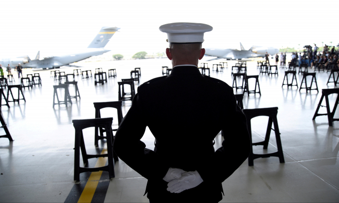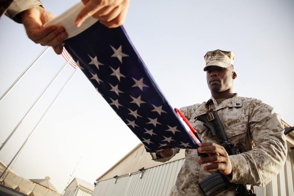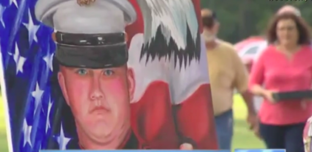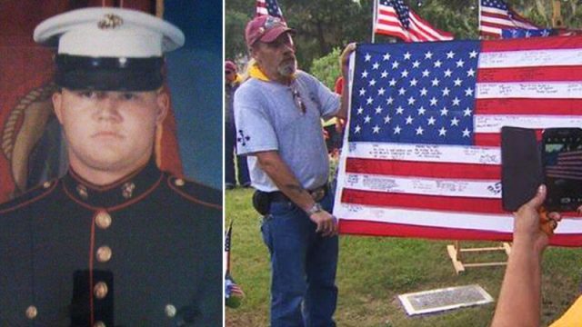 US-Marines zeigen am Haus von Ex-Army-Mann, nachdem er eine amerikanische Flagge kauft, die eine geheime Geschichte hat