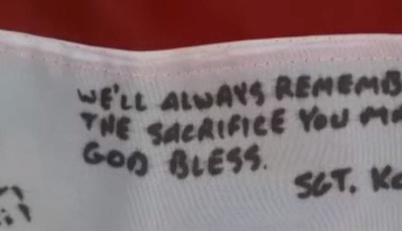Das Gefühl, nachdem Patsy die Flagge hielt, war in der Tat ein ganz besonderer für sie. "Es ist ein Stück meines Sohnes, das zu mir zurückkommt", sagte Maciel, der in Harris County lebt. "Es fühlt sich großartig an und ich liebe sie dafür. Ich habe nicht meinen Sohn, aber zumindest habe ich das. "