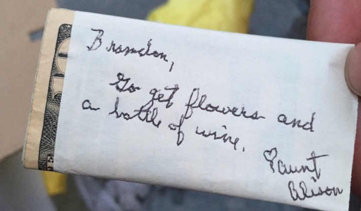 Kathy Lesen, "Gehen Sie eine Pizza, Garnelen oder etwas, das Sie beide mögen. Holen Sie sich ein Bad bereit. " Brandons Note Lesen, "Gehe Blumen und eine Flasche Wein." Kathy erinnerte sich, "Alles in der Nähe haben wir davon ausgegangen, dass der Inhalt dieser Box den Schlüssel zur Rettung einer Ehe hielt. Ein altersalter Trick - unbetracht der US-Rookies. "