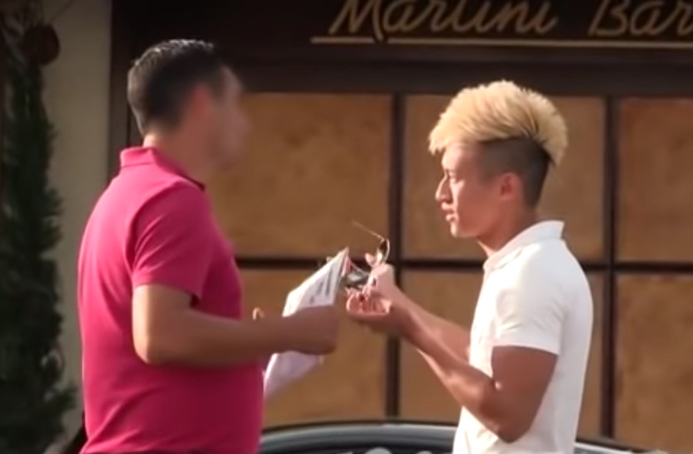 Er ging dann zurück zu einem nahe gelegenen Parkplatz und veränderte sich in teure Kleidung. Der Mann änderte sein Erscheinungsbild und fuhr in einen teuren Sportwagen in den Block zurück. Und die Behandlung, die er von Leuten bekam, dauerte 180 Grad.
