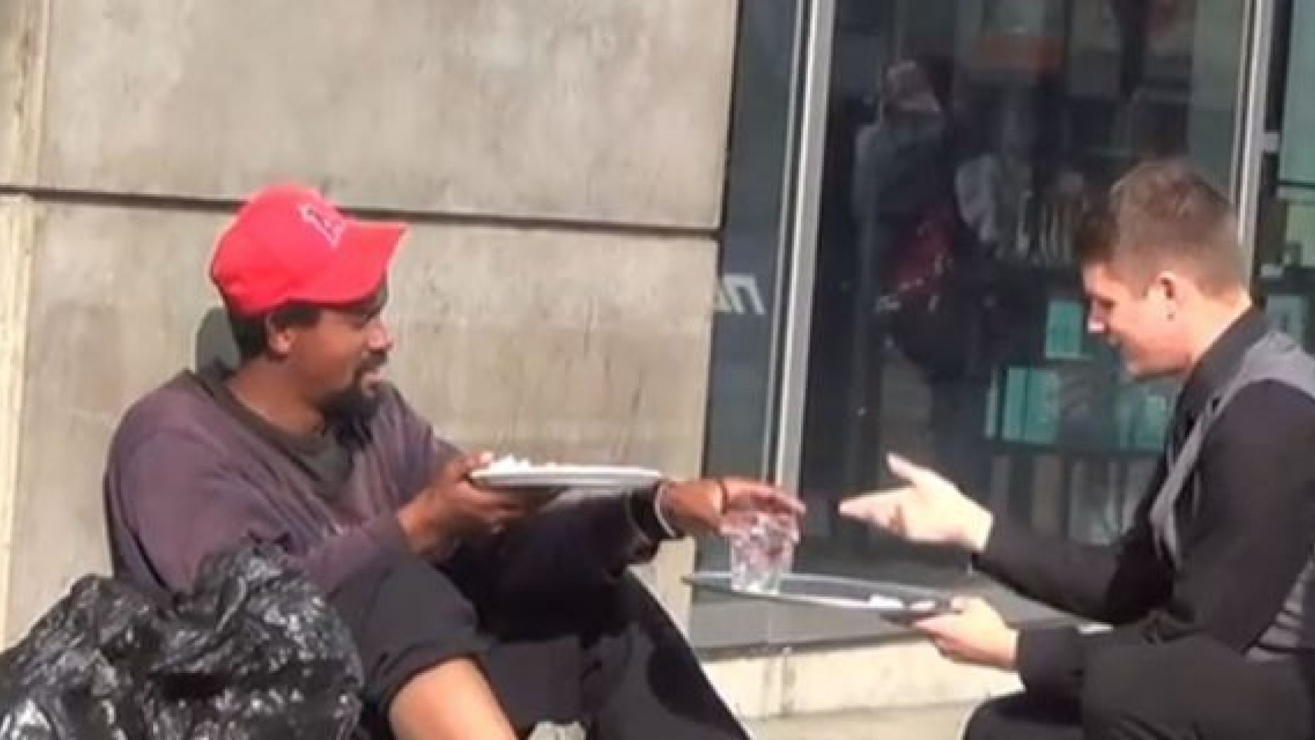 Man lehrt eine perfekte Lektion für einen Kellner, der sich weigerte, einen Obdachlosen in seinem Restaurant zu essen