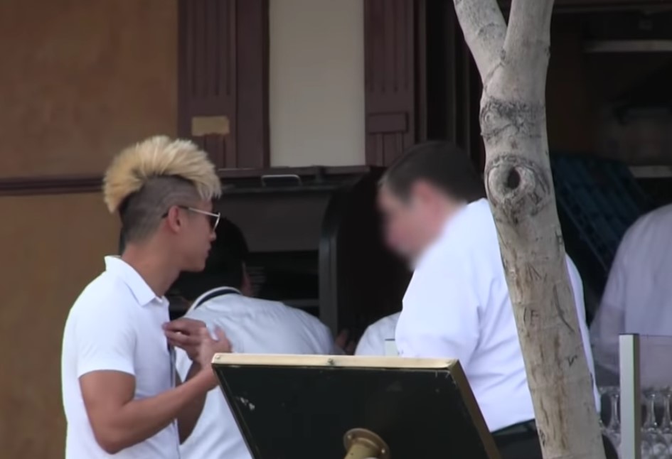 Der andere Kellner, der mit diesem kleinen Gespräch mitteilt war, schämte sich sichtlich über seine Handlungen. Er schien über seine Taten zu reflektieren, als er beobachtete, wie der Mann wegfahren. Die Kellner aus den nahe gelegenen Restaurants schienen das zu fangen, was passiert ist, als sie die Kameras um sie herum erlebt haben.