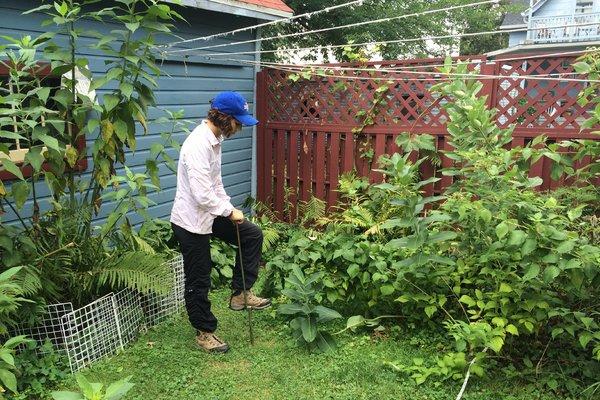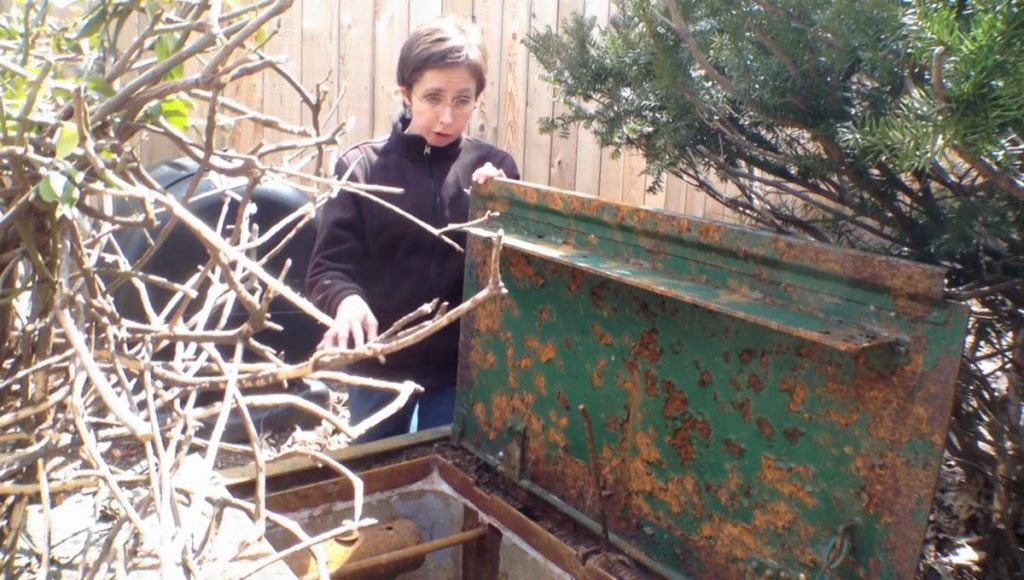 Sie stand nur vor der Luke, als sie den Mann fühlte, der von hinten kam. Er fragte sie, warum sie still stehte. Sie sagte ihm, dass sie zweifelhaft war, was die Luke enthalten könnte. Er war sicher, den Hinterhof aufzuräumen, also ging er weiter und fing an, das Gras herauszuziehen.