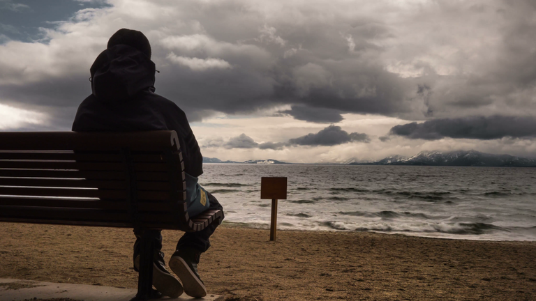Er tauchte innen am Ufer seine Sorgen zu verlassen. Er küsste das blaue Wasser und übergab seinen Körper zu. Es schien er seine Seele das Wasser im Austausch für seine Flucht gegeben hat. Er tauchte in und in, aber sein Trost war nirgends zu finden.