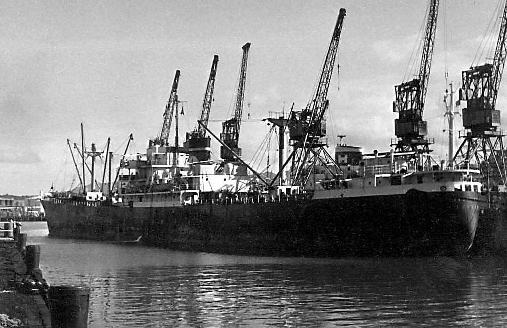 Wenn dasMV E Evangelia.wurde 1942 erbaut, wog es 7.355 Bruttogregister Tonnen. Es war ein gekühltes Frachtschiff und überlebte die Kämpfe des Ersten Weltkriegs. Gefrorenes Fleisch wurde von Argentinien nach Nordafrika, Algier, Kuba und Australien transportiert. Von 1944 bis 1945 wurde das Schiff umfassend für den Transport verwendet.