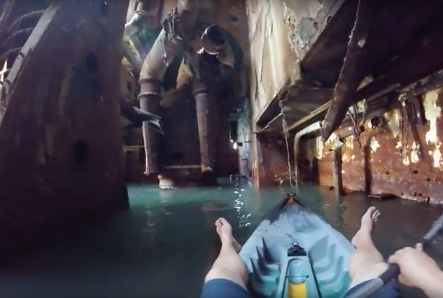 Das Eintritt in das Schiff ohne Sicherheitsmaßnahmen war in der Tat riskant. Die Struktur des alten Schiffes war sehr schwach. Es könnte möglich sein, dass, wenn das George-Kajak einen Teil des Schiffes berühren würde, das Schiff enden, das am Ende zerschmettern würde.