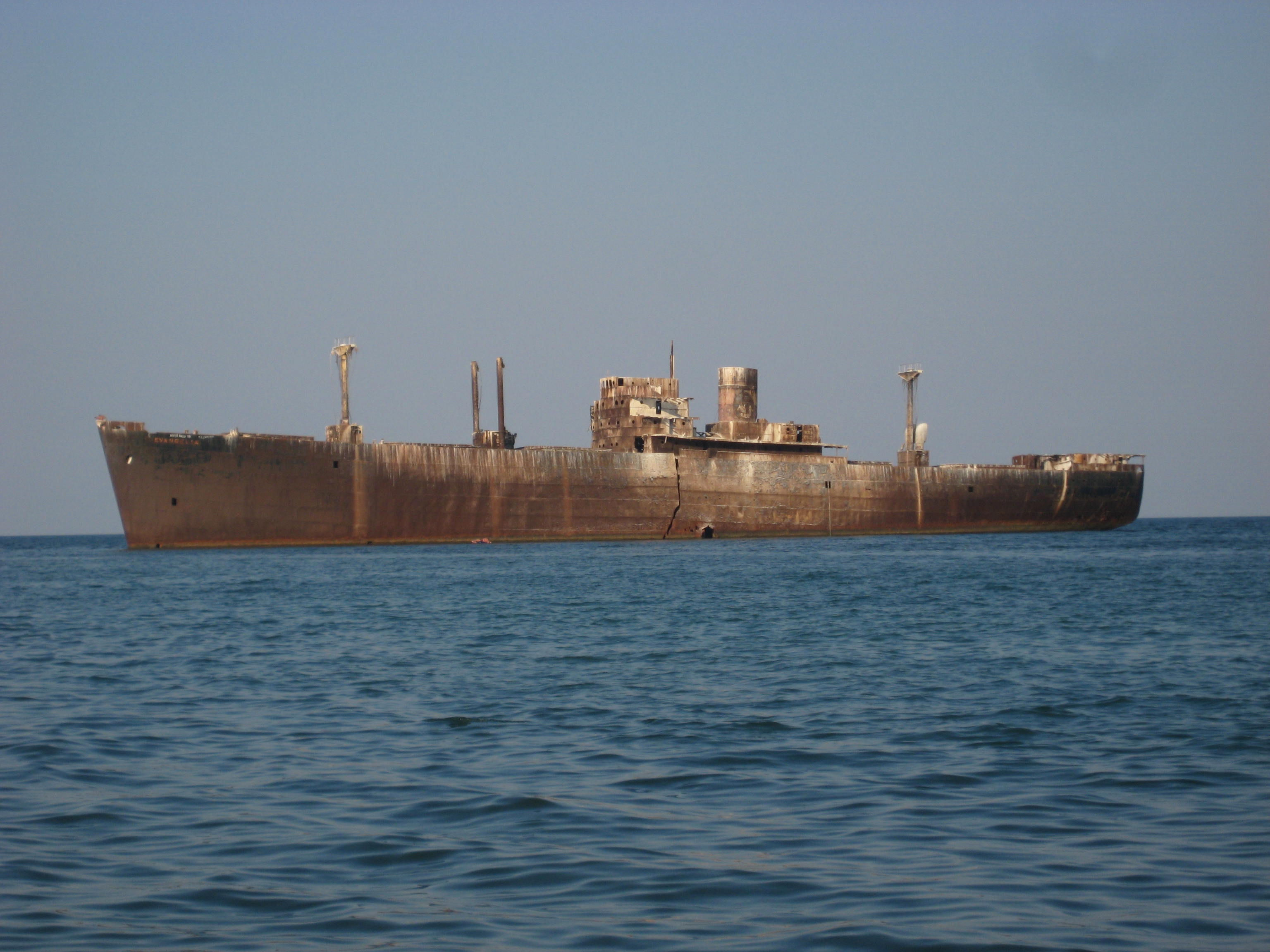 Die rostfreieEmpire-StärkeHat wirklich ein Meisterwerk gewesen, das immer noch im Schwarzen Meer steht, von dem die Menschen, die den Strand besuchen, einen Blick auf sich haben können. Das Schiff rannte nur 16 Meilen südlich zum Schwarzen Meer. Und hier wurde es für immer aufgegeben.