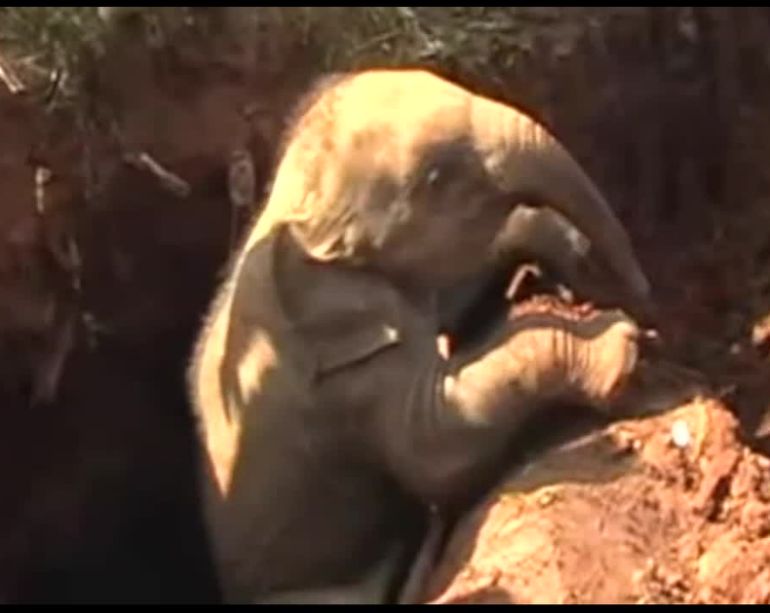 Elefanten sind dafür bekannt, sehr mitfühlend zu sein, sie gehen in Herden, wo immer sie gehen müssen. Obwohl sie recht massiv sind und allein niemanden gefährden könnten, müssen sie einige Tiere in der freien Natur vermeiden. Jedes Mitglied ihrer Familie ist tief geschätzt und sie finden es hart gehen zu lassen von einem Mitglied und dies war das jüngste Mitglied ihrer Familie kämpft um sein Leben ständig in einem Loch.