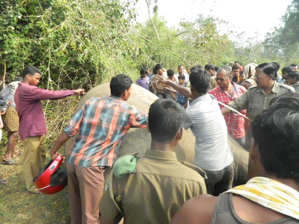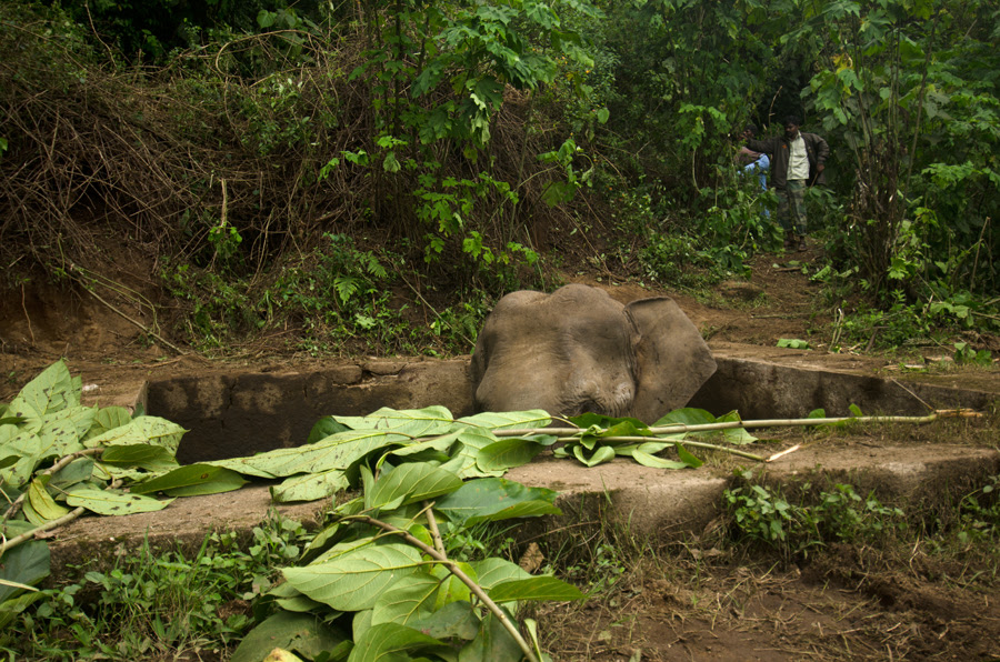 Bald kam ein Rettungsmannschaft im Caravan-Auto, das sich als Wald- und Wildtieroffizier identifizierte. Sie richteten die Menge sowie die Herde zu einer Seite, so dass sie eine richtige Ansicht des Lochs haben könnten, in dem der Elefant eingeschlossen war. Nach Analyse erkannten sie, dass sie möglicherweise größere Geräte benötigen, um dem Elefanten zu helfen.
