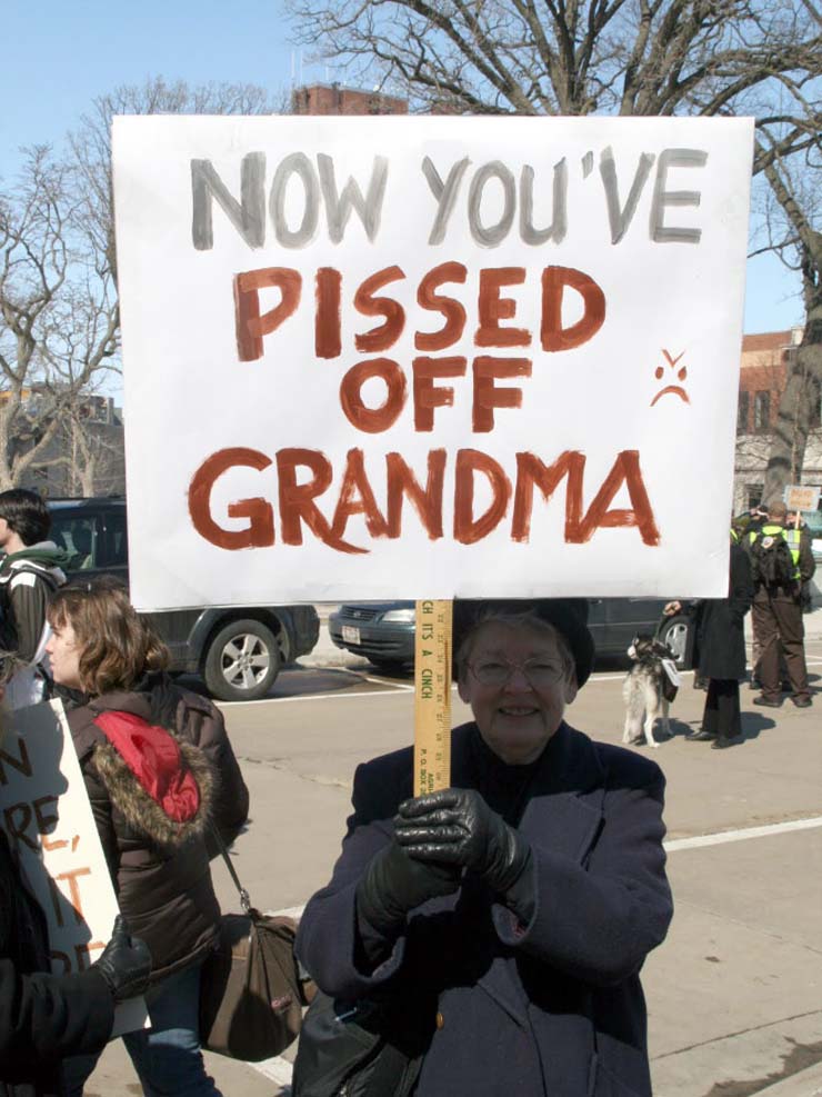 Es gibt immer eine Person im Haus, die Kinder mehr als jeder andere liebt, und diese sind diejenigen, die grouchier wie sie Alter zu bekommen. Sie kann es richtig erraten sie die Omas im Haus sind. Also hier das Zeichen wird von einer Oma gehalten, die wütend zu sein scheint, weil sie nicht eingeladen wurden, über einen Sonntagsbraten. Wir hoffen, dass die Menschen verstehen, dass schlechte Laune mit dem Alter kommt und laden sie das nächste Mal haben sie eine Get-together und Pisse nicht wieder sie.