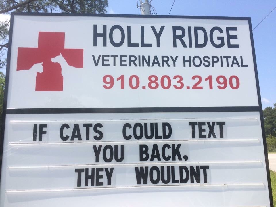 Katzen werden oft als eine der am wenigsten freundlichen Tiere auf der Erde unter dem Haustiere möglich. Und das Tierklinik sicher scheint nicht eine gute Erfahrung mit dem haben. So hatten sie eine persönliche Warnung neben dem Schild aufstellen. Aber wir hoffen, dass ihre Haltung gegenüber den Katzen hat keinen Einfluss auf ihre medizinische Behandlung von ihnen!