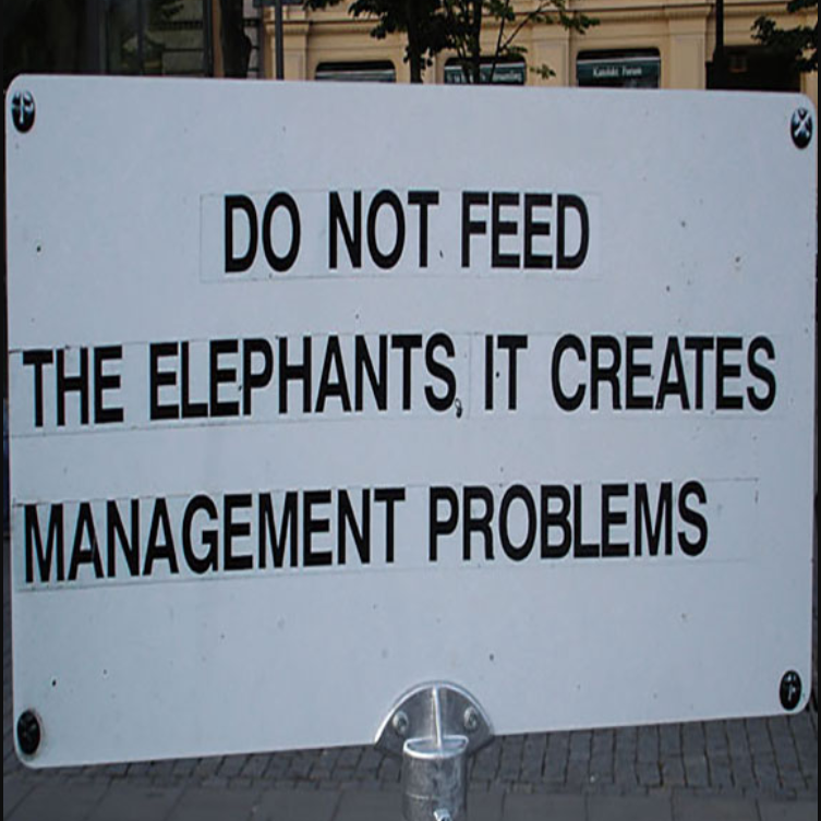 Es gibt viele Aktivisten, die gegen Zoos sind und nicht zustimmen, die Tiere zu verketten. Dieses Zeichen würde sie wahrscheinlich aufrichten. Daher würden sie die Elefanten absichtlich füttern, um das Personal nach ihnen zu leiten, und genießen das Personal, das kämpft, um eine Herde zu verwalten. Dieser wunderliche Angestellte weiß sicher, wie man mit Zeichen spielt, während er seinen Job tut.