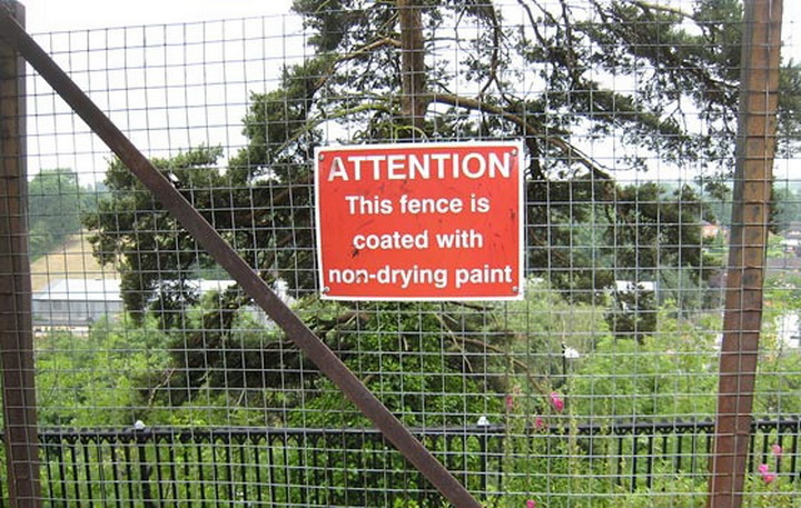 Wir alle wissen, wie schwierig es ist, ein hartnäckiges Kind zu machen, das Sie gehorchen und ankommt, wir sind alle dort gewesen. Es wird zur Aufgabe, Kinder zurückzuhalten, etwas dummes zu tun. Die heutigen Kinder sind vor der Zeit weit voraus, so dass sie einfach nicht einfach ausgetrickst werden können. Wer dieses Zeichen hergestellt hatte, könnte sehr intelligent sein, um eine Vorstellung von nicht trocknender Farbe aufzubauen, um Kinder davon abzuhalten, den Zaun zu berühren.
