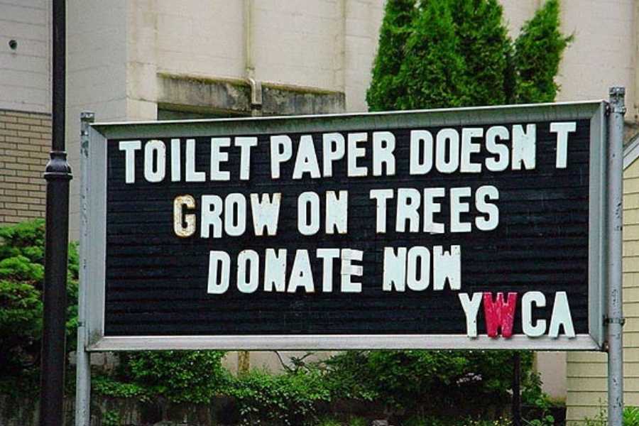 Dieses Zeichen scheint eher wie ein innerer Witz zu sein, anstatt ein informatives Zeichen. Aber wir hoffen, dass es ein Witz ist! YWCA ist eine globale Bewegung, die in mehr als 120 Ländern global für die Ermächtigung der Frauen strebt. Dies ist jedoch unklar, dass sie aus all den Dingen die Menschen dazu ermutigen können, zu spenden, sie hatten gebeten, Toilettenpapiere zu spenden. Vielleicht, weil die Leute vergessen haben, gute Taten zu tun, wie Geld an der Bedürftigen zu spenden, und dieses ist ein sarkastischer Kommentar. Nun, wir können nur raten!