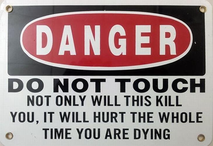 Bei der Erzeugung von Touchscreen-Telefonen und Fernsehen mit einer realistischeren Sicht erhalten die Menschen eher Informationen aus dem Fernsehen, als den Schmerz zu ertragen, um einen Zoo zu besuchen. Es wird also ein Wunder sein, wenn Sie Menschen im Dschungel sehen, und offensichtlich möchten Sie sie nicht mit ein paar mürrischen Anzeichen abschrecken wollen. Der Hausmeisterin dieses Dschungels scheint jedoch besonders an dem Teich zu sein und setzt ein Zeichen auf, das Sie nicht sehen wollen. Was es einzigartig macht, ist die Tatsache, dass es in mutigem Rot geschrieben wird, und die Wörter werden aktiviert. Und nur für den Fall, dass Sie das Zeichen absichtlich vermissen, ist ein weiteres Zeichen in den Füßen des Zeichens, das ausreicht, um Ihre Züge zu sehen!