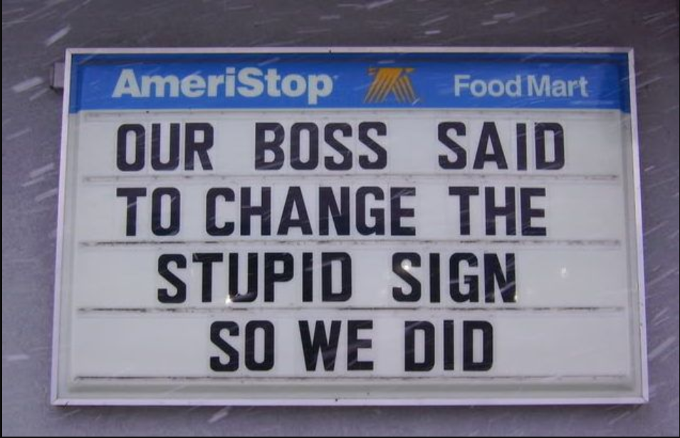 Zeichen sind eine intelligente Möglichkeit, Informationen bekannt zu kündigen, ohne dass jemand in den Sweat-Truppensommer oder knochenkühlende Winters stehen, um Menschen unterwegs zu führen. Diese Zeichen werden oft so einfach wie möglich gemacht, so dass die Menschen es alleine lesen und verstehen können. Es gibt jedoch bestimmte Anzeichen, die keinen Stein stürzen lassen, um ihre Botschaft mit einer Prise Humors laut zu sagen. Nachfolgend sind einige der lustigen Anzeichen aufgeführt, die Sie sicherlich lauten lassen, während Sie auf den Boden fallen.