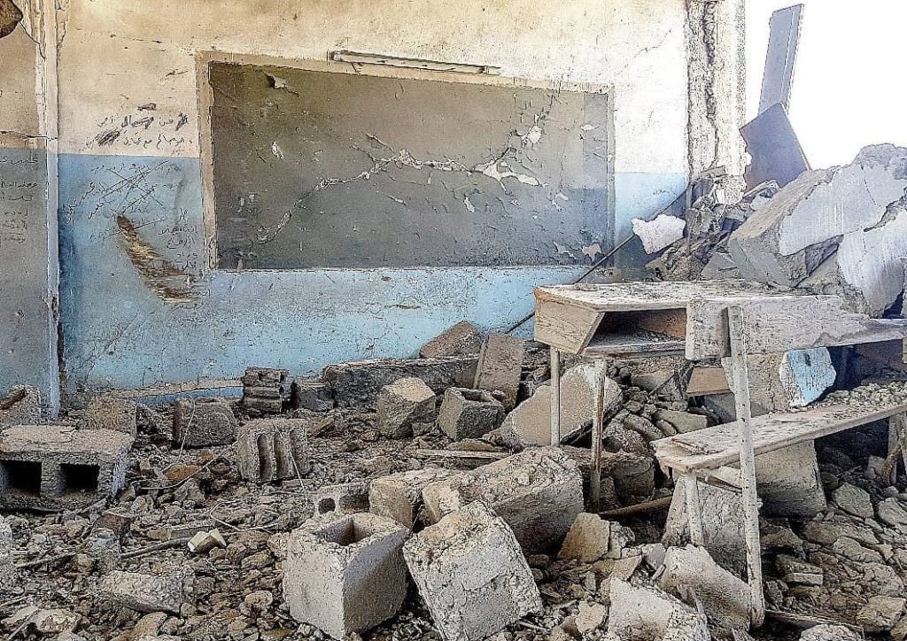 Der britische Soldat, der durch die Überreste eines Schulgebäudes in Syrien simst, macht eine lebensänderende Entdeckung