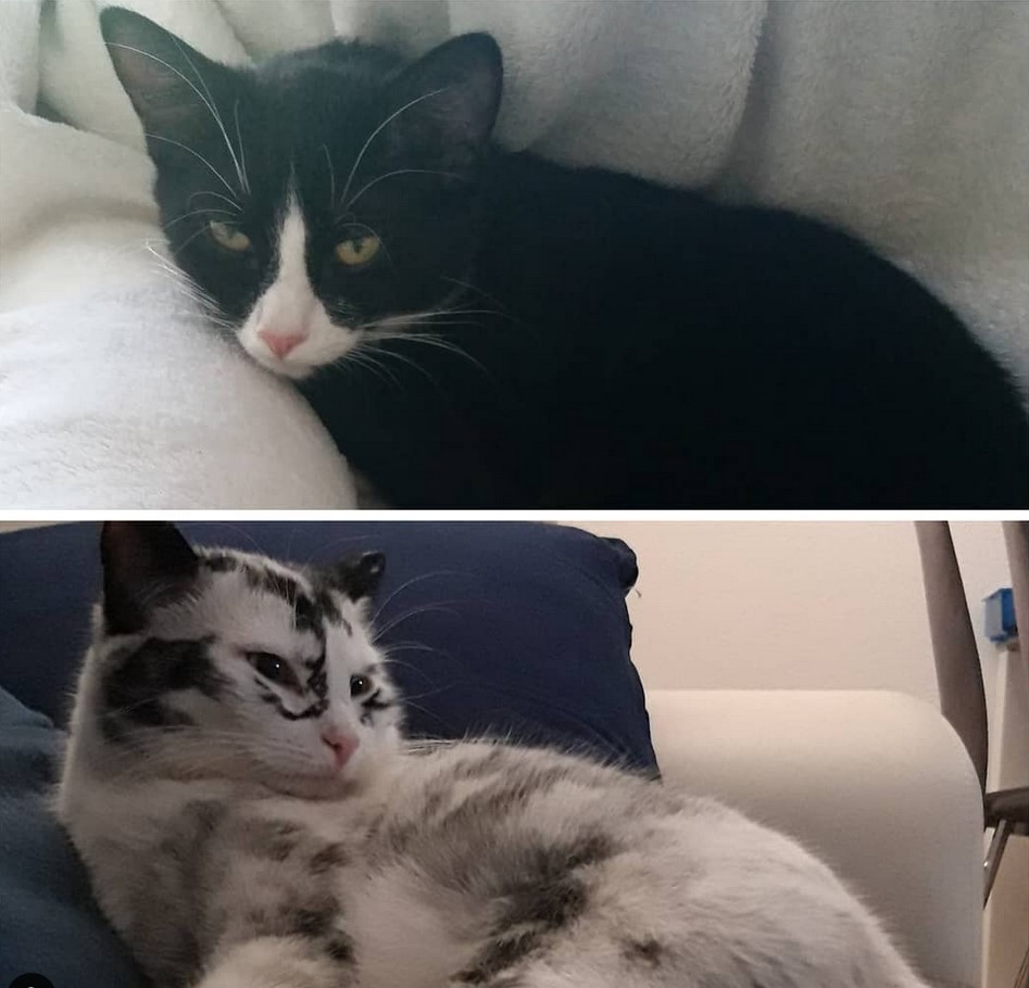 gerettete Smoking-Katze verlässt den Besitzer sprachlos, nachdem sie beginnt, die Farbe zu ändern