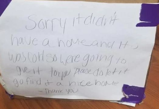 Die Nachricht las, "Entschuldigung, es hatte kein Zuhause und es war kalt. Wir werden es Ihnen also geben. Bitte lass es gehen. Finden Sie es ein schönes Zuhause. Dankeschön.". Das Bild dieses kleinen Jungen, der weg läuft, kam auf dem Geist des Hausmutors zurück. Es hat jetzt alles Sinn gemacht. Er musste diesem Welpen helfen, ansonsten überleben sie nicht lange in dieser Kälte.