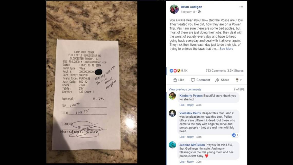 Nachdem Sie ihre Verschiebung am Diner abgeschlossen haben, ging Courtney direkt an ihren Platz und rief die Voorhees Township Polizeistation in der Hoffnung, über den Polizisten zu finden. Aber die großzügige Seele hatte sich entschieden, sich als anonym zu halten.