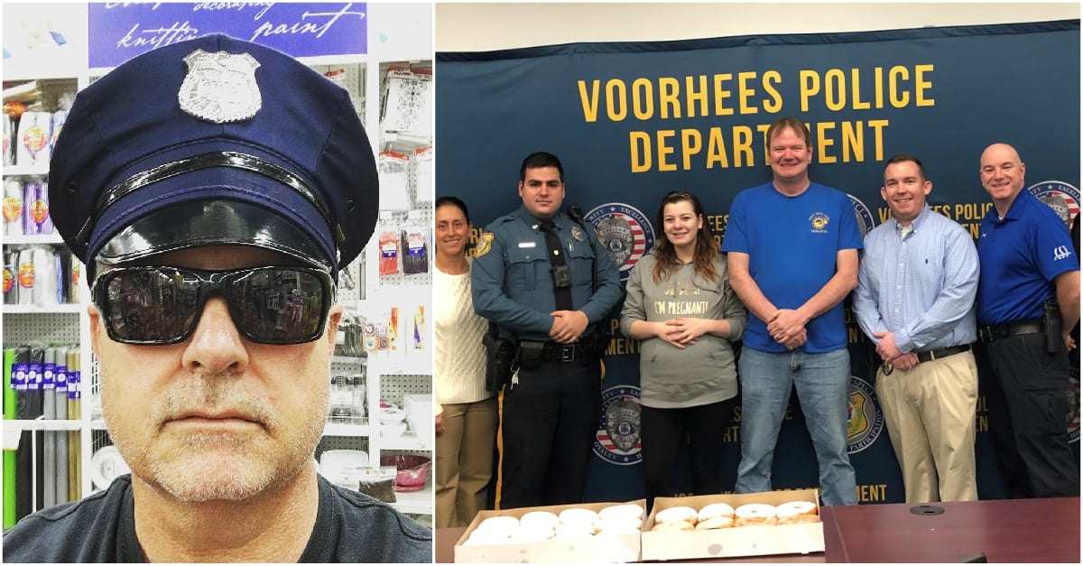 Da der Polizist wollte nicht seine Identität offenbaren, entschied Courtney und Brian Voorhees Polizeistation zu besuchen und nahm eine Schachtel mit Donuts für sie. „Dank Brian Cadigan & Courtney Englisch in Leckereien für unsere Mitarbeiter heute Morgen zu bringen“, schrieb Voorhees Polizei auf ihrem Twitter-Account.