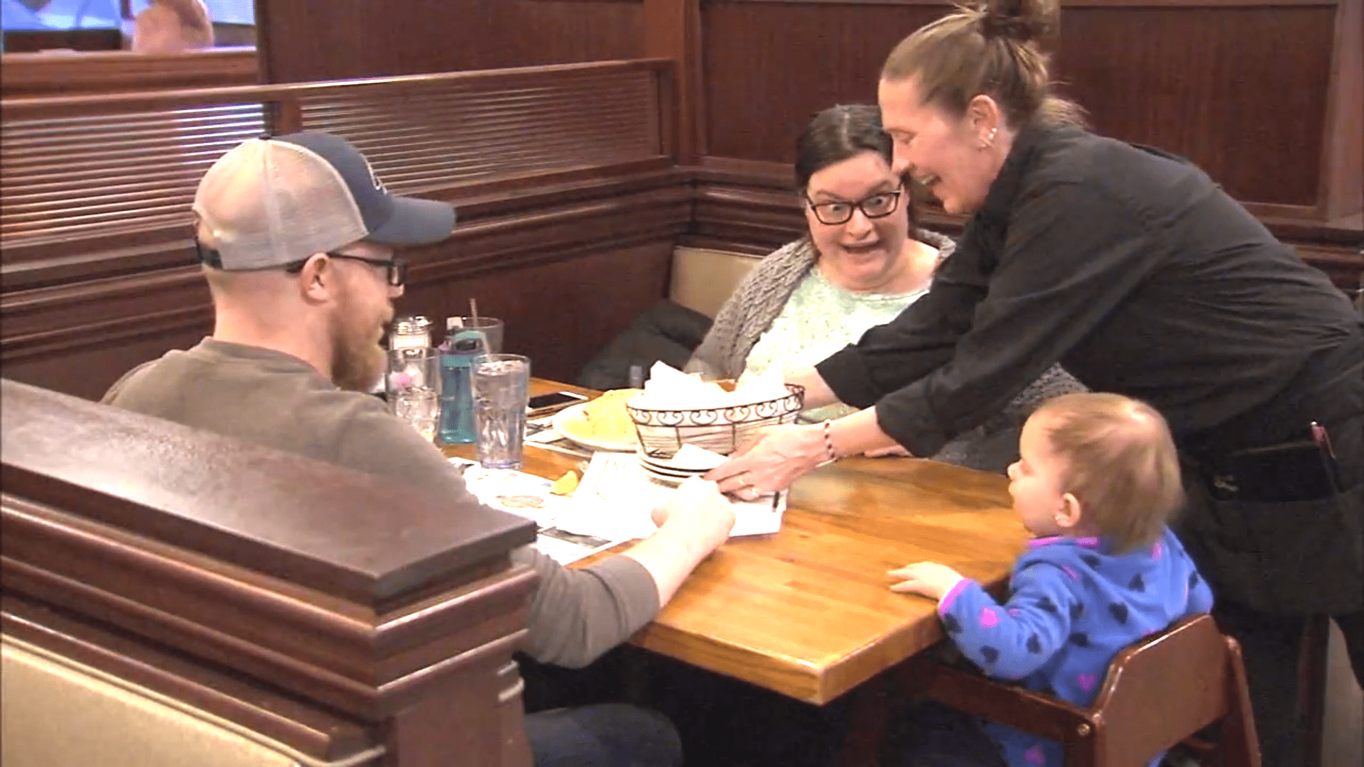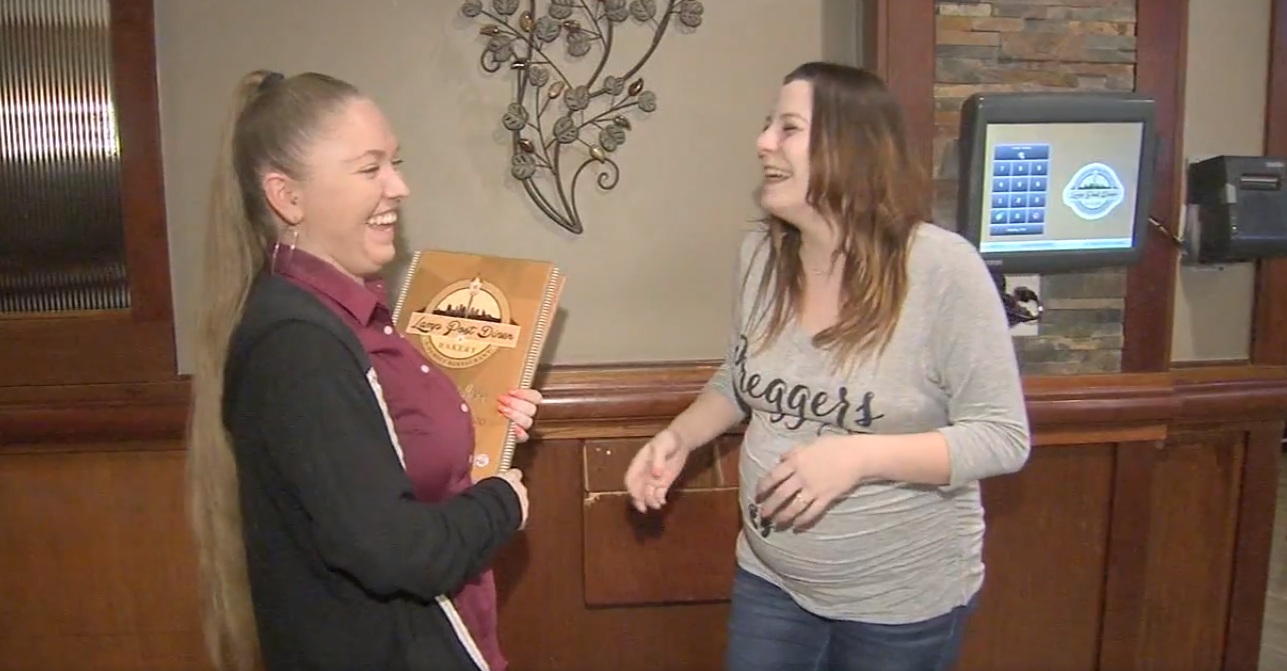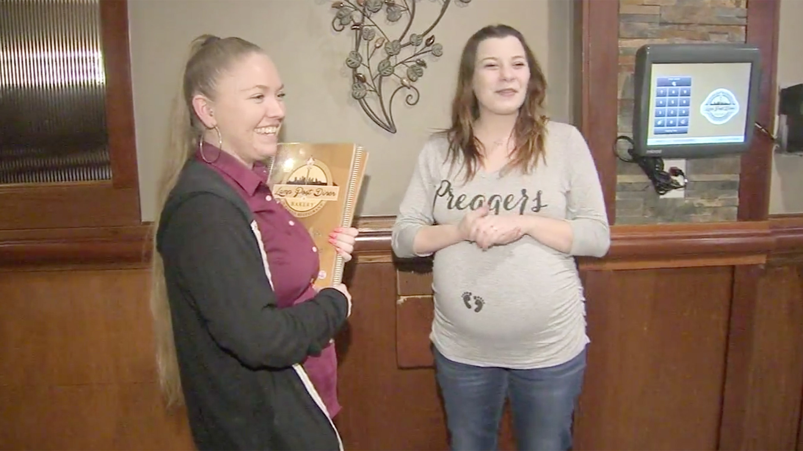 Schwangere Kellnerin läuft zu ihrem Chef nach einem Polizisten weinen nicht etwas seltsam, wenn sie gibt ihm einen $ 8.75 Scheck