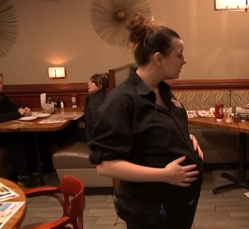 Die To-Be-Mutter war schon acht Monate schwanger und hatte beschlossen, so lange zu arbeiten, solange sie so konnte, dass sie etwas Geld verdienen könnte, das ihr während ihrer Mutterschaftsurlaubszeit helfen würde, wenn sie wusste, als sie wusste, dass sie zusätzliches Bargeld brauchen würde.