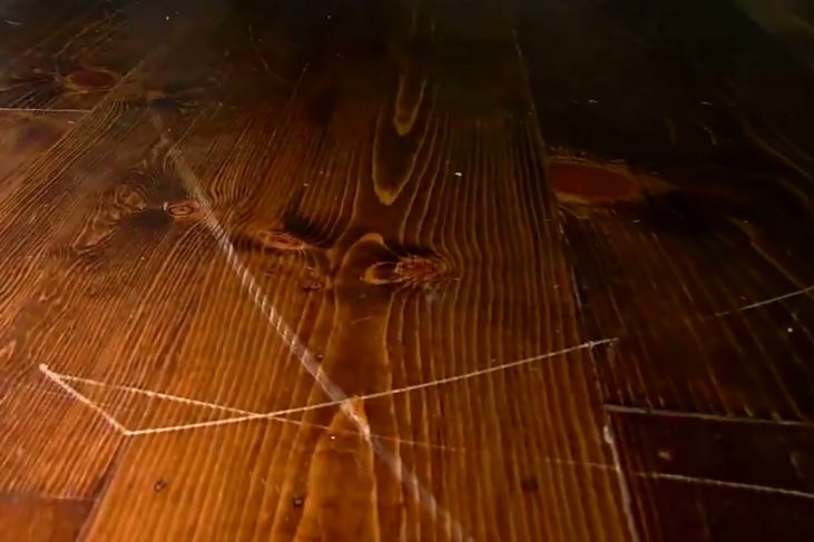 Scaringly, wenn die Frau ihr Haus betrat erkannte sie, dass es völlig verändert hatte. Das Haus sieht schmutzig und zerstört. Es schien, als ob sie ein fremdes Haus betreten hatte. Die Frau brach in Tränen aus, sobald sie ihre Augen auf dem Boden verlegt. Ihre schöne Kirschholzböden wurden brutal mit Kratzern und Schrammen ruiniert.