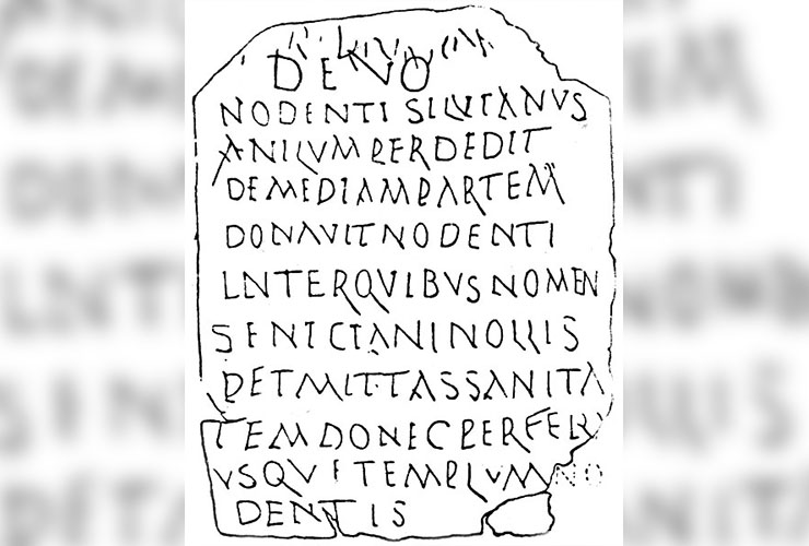 Die Plakette hatte Wörter, die in lateinisch graviert waren, also mit Hilfe eines Etymologen, den sie versuchten, den Text zu dekodieren, der "für den Gott Nodens gesagt hat. Silvianus hat einen Ring verloren und hat eine Hälfte gespendet, die es wert ist, NODENS zu nodieren. Unter den namens Senicianus erlaubt es keine gute Gesundheit, bis es in den Tempel von Nodens zurückgekehrt ist. "Gab es eine Wahrheit?