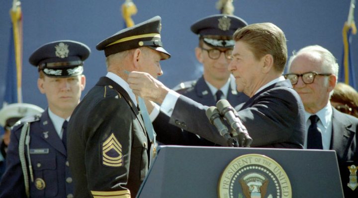 Der Präsident sprach sogar über die Unfähigkeit von Crawford, während seiner Ehrenmedaille anwesend zu sein, weil er in dieser Zeit in der Deutschen Truppenhafter Sorgerei war. Danach kündigte Reagan etwas Schockierendes an, "Nun, fast 40 Jahre sind vorbeigegangen, und es ist Zeit, es richtig zu machen." Als er seine Rede beendete, rief er Crawford an, mit ihm am Podiumende anzuschließen. Dann medelte der Präsident Crawford mit der Ehrmedaille, um seinen lebenslangen Traum wahr zu machen ...