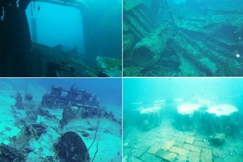 Das obige Bild ist von der eindringlichen Chuck-Lagune. Die Lagune war während des Zweiten Weltkriegs das Hauptbasislager für die Japaner. Es wurde 1944 von den US-Streitkräften zerstört, wodurch der Untergang von mehr als 60 Kriegsschiffen und 250 Flugzeugen führt. Überraschenderweise wurden die Schiffe gut erhalten.