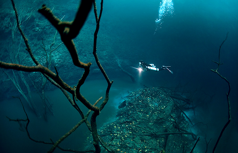 Wenn Sie weit in die Halbinsel Yucatan, zwischen dem karibischen Meer und dem Golf tauchen, finden Sie einen mysteriösen Fluss, der darunter fließt. Diese flüssige Dichte des Wassers wurde durch die starke Konzentration des Salzwassers ermöglicht, der sich am Boden des Flusses befindet. Diese Konzentration trennte Süßwasser aus dem Salzwasser.