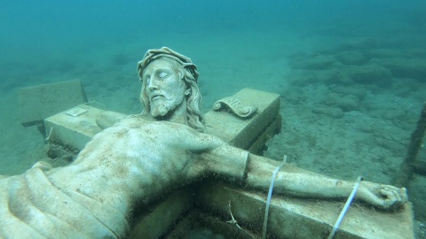 Im Jahr 1956 ein paar verlor ihren 15-jährigen Sohn in einer Schrotflinte auf dem Hof. In seinem Gedächtnis beauftragten die trauernden Eltern einen 11-Fuß-Marmor Kruzifix aus einem italienischen Bildhauer. Das Kreuz wurde im Transit beschädigt, so dass die Eltern weigerten sich, es zu nehmen und es wurde zu einer Tauchclub verkauft. Die Mitglieder des Vereins senkten das Kruzifix in Erinnerung an den Menschen, die ihr Leben während des Tauchgangs verloren.